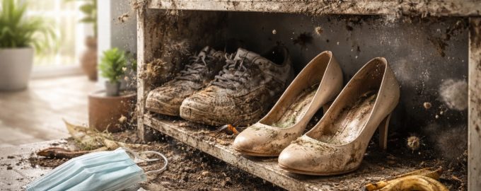 Vsakič, ko se vrnemo z ulice, si na podplat prinesemo podplate. koktajl kemikalij, težkih kovin in organskih ostankov. Ti delci se v zaprtem prostoru omare ali galoše izsušijo in se spremenijo v droben prah.